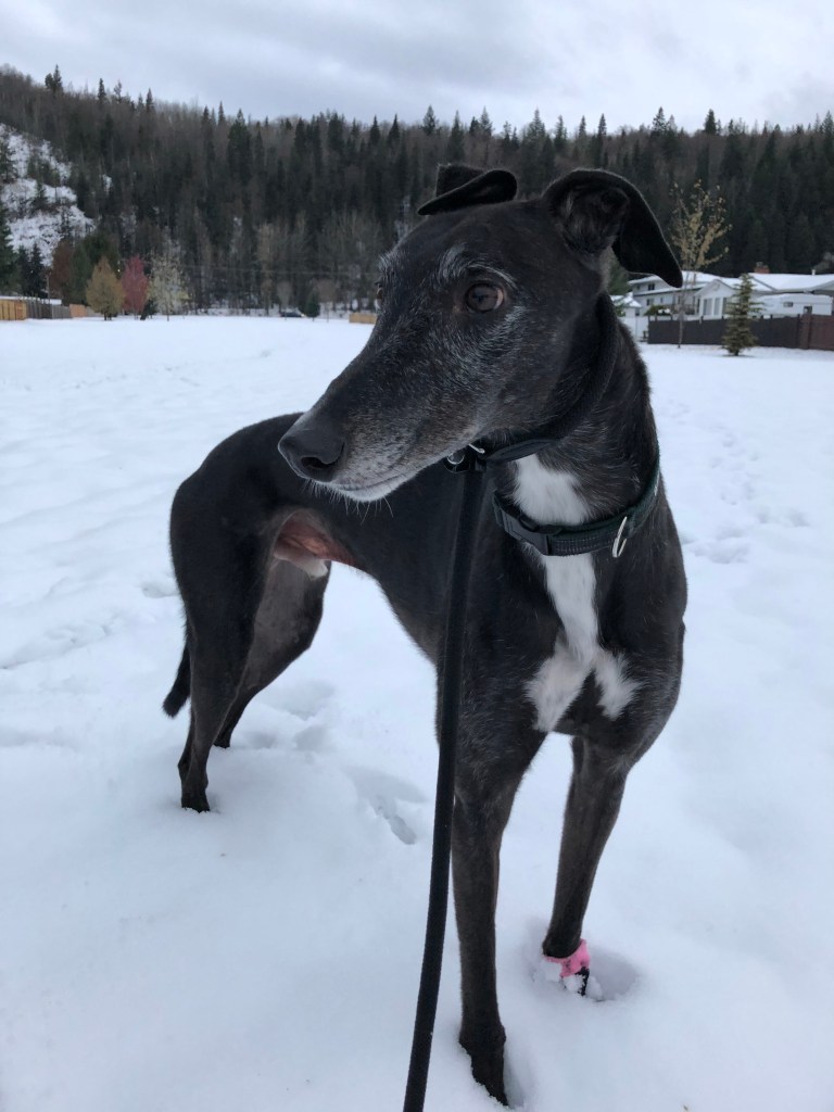 Naturally, if you bring a dog to Northern British Columbia who is completely inappropriate for this climate you have to drop some serious dollar equipping him! Most doggies here are rugged, hairy creatures but poor Bally (our rescue Greyhound) is short haired and has legs of dubious strength, due to a break previously in one and ligament damage in another.