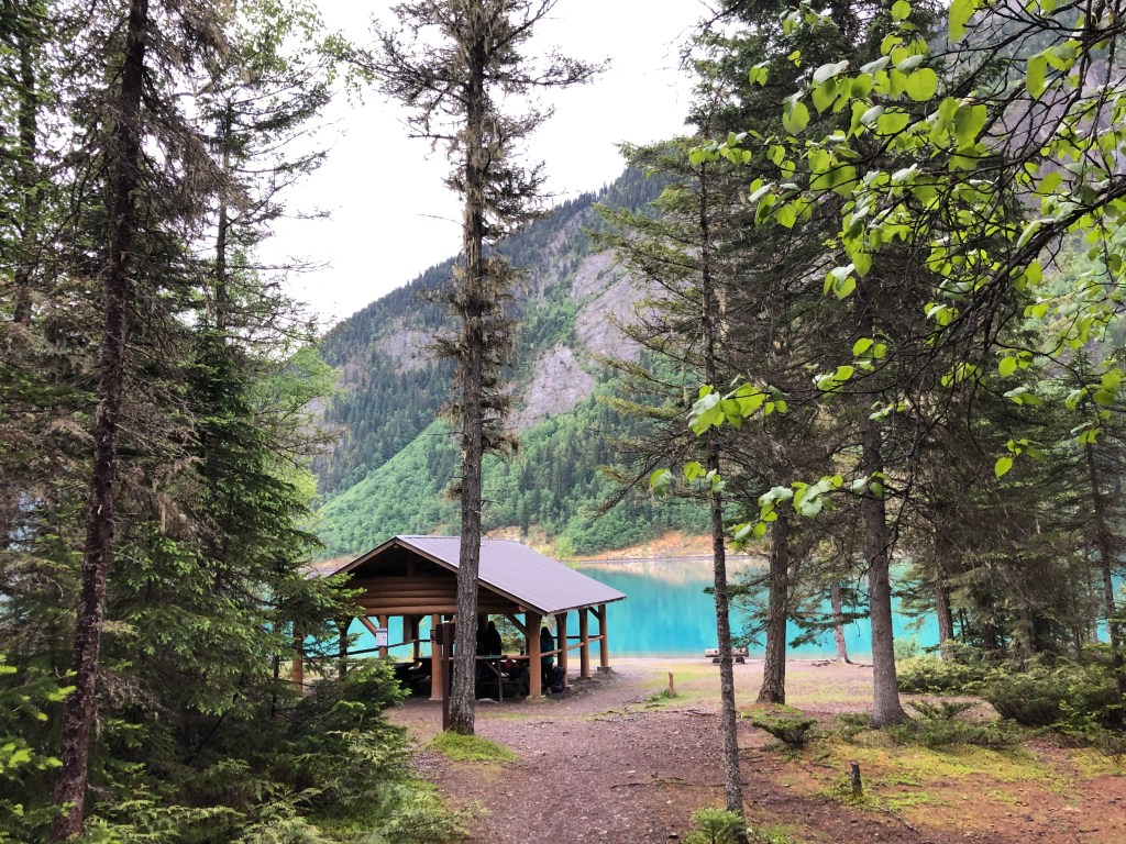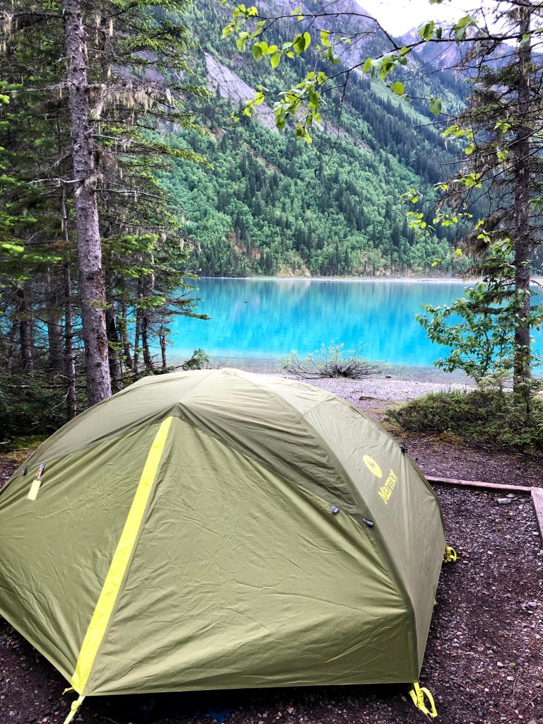 While it would have been possible to walk further the first day, how could anyone miss out on stopping at Kinney Lake to camp right beside its pristine, jewelled water.