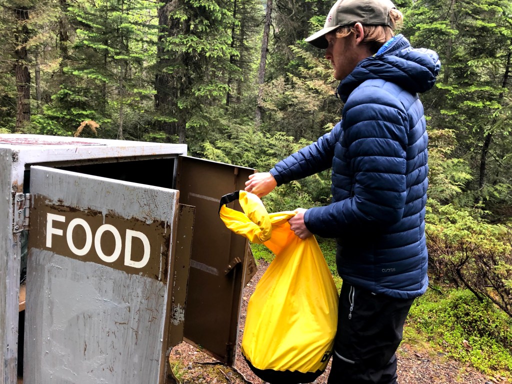 All bear attractants go into the yellow bag which is then stored in the food locker away from camping spots!