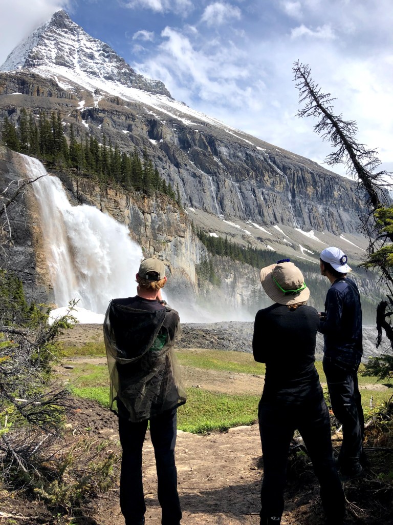 Jacob, Courtney and James admiring Emperor Falls and Mount Robson