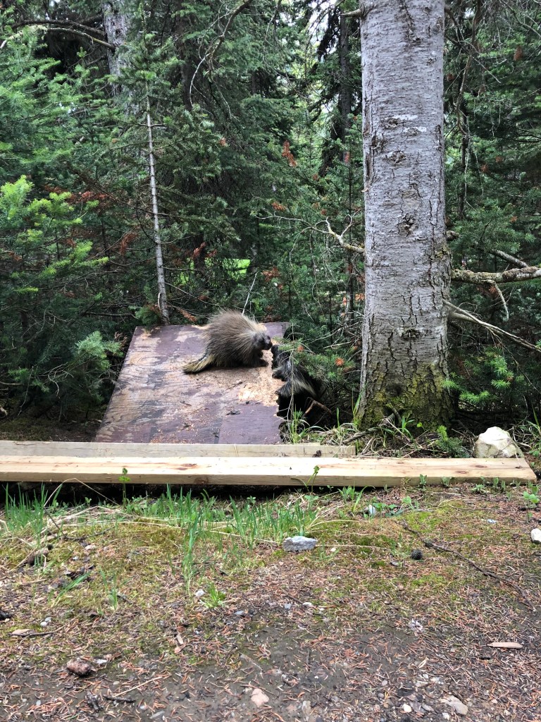 Sitting near to two porcupines, watching them bickering over who gets to nibble which bit of wood and listening to their long squealed speeches to each other was a great pre-dinner show!