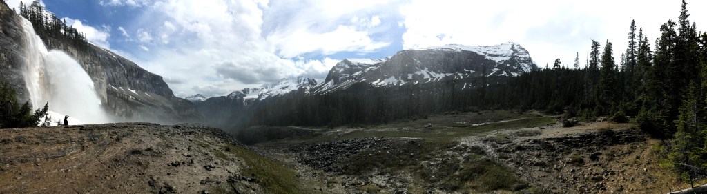 A gigantic waterfall, so powerful the mist soaks you from meters away, Emperor Falls stands in front of Mount Robson at the head of a mountain lined valley. Not long after we had decided to hike the Berg Lake Trail together, Country had told us that when she had seen Emperor Fall on a previous occasion, she had cried. I could see why.