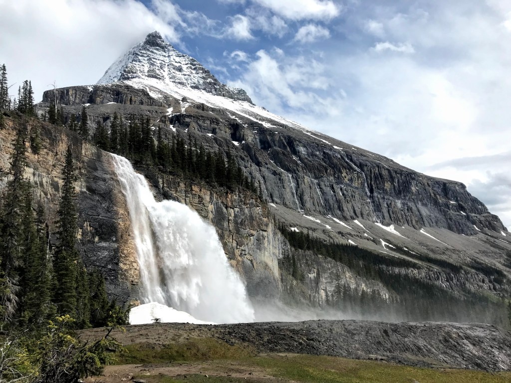 Much of the uphill climb is in the forest, however, every so often you cross a bridge and the trees clear allowing you the sight of Mount Robson towering over you.