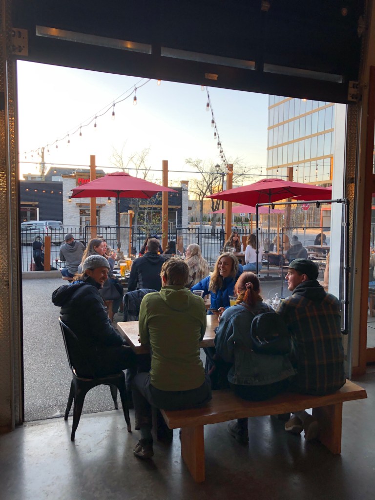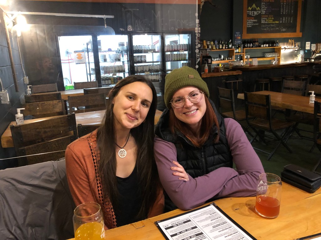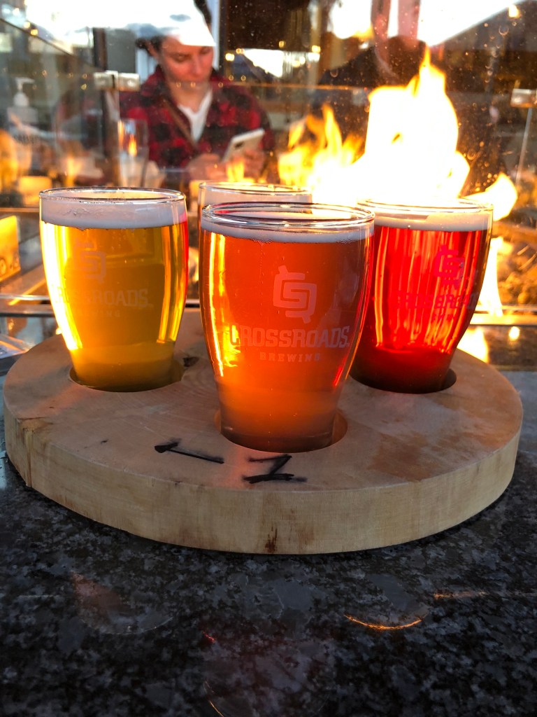 Crossroads Brewery where we got a ‘flight’ and so we tried four of the different beers they make there. You can see into the brewery, there’s pipes everywhere and a great big, dead black bear on the wall!