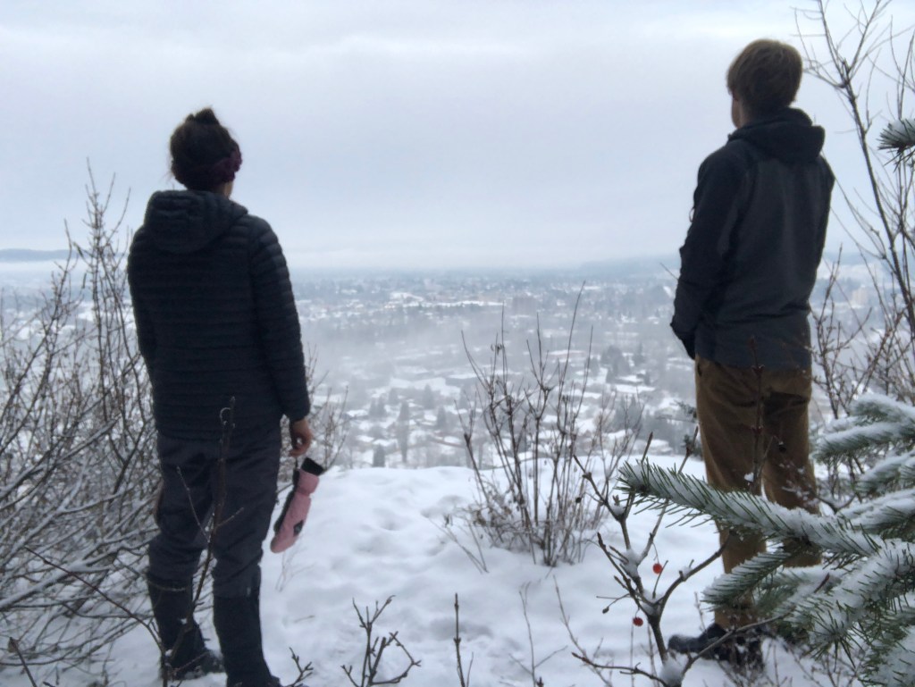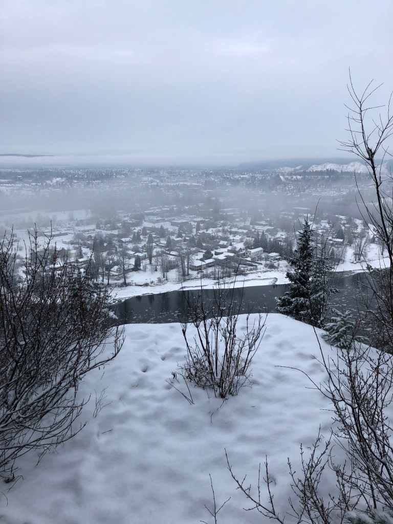 There are a lot of places in Prince George you can walk around and feel safe. I went up to ‘Forest For The World’ near UNBC and walked around Shane Lake. I had a legendary outing on Connaught Hill, where I learnt about stepping in tree wells!! I also had a coffee and a walk in Ginter’s.