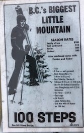 The sign at the bottom informs us that the hill we are about to snowshoe up was once a ski hill know as BC’s Littlest Mountain. The ski hill opened in the 1960s and was a popular spot until a fire at the ski lodge led to the closure of the whole site in 1971. As we set off, I was imaging the 1960s skiers, in woolen jumpers, flying down the steep hill, having paid just $2.50 for the pleasure!