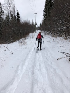 Emerging back onto the old ski hill we were still high above Prince George. The city laid out before us, buildings just little black dots, breaking up the white. We might not have descended as fast as those skiers a generation ago, but we came down the final part of our trail much faster than we’d ascended, ending an adventure which taught me about a little piece of the history of Prince George and showed off what a variety of different trails you can experience in one day