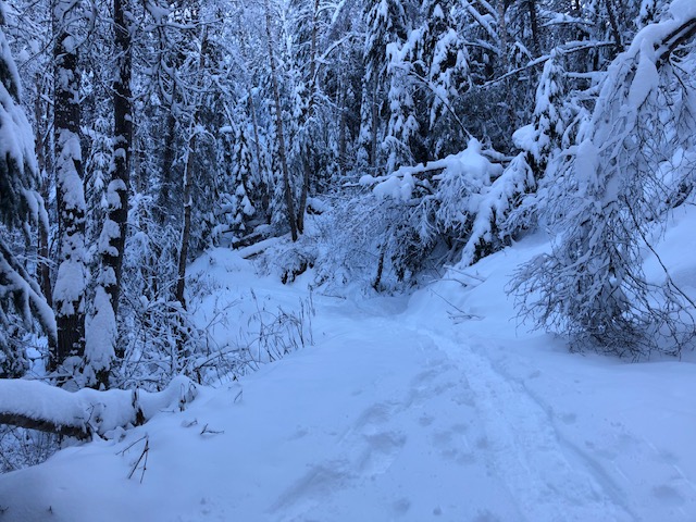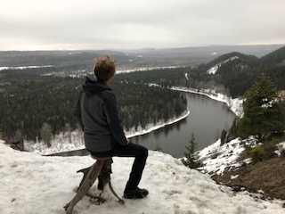 The rain had been falling ruining the powder and encouraging me to stay inside and bake oranges for the Christmas Tree when I decided enough was enough and I needed to get out. Having already wasted most of the daylight hours we needed a local adventure and the very first hike I did with the PWA Co. sprang to mind. With a steep section at the start, views from above the tree line of Nechako River and an adrenaline rush decent to finish on, I knew Jacob would love it.