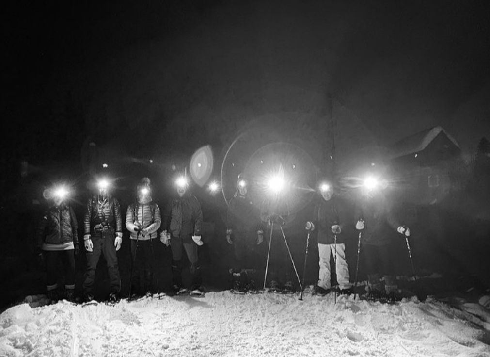 As soon as we entered the moonlit forest I was glad I’d agreed to this little evening adventure. A slither of a moon hung low in the sky, revealing the outline of the Evergreens as we tested out our new Equipment. The ‘Meadow’ is a long field flanked either side by dense forest and the perfect place for a collection of deep snow to wade through.